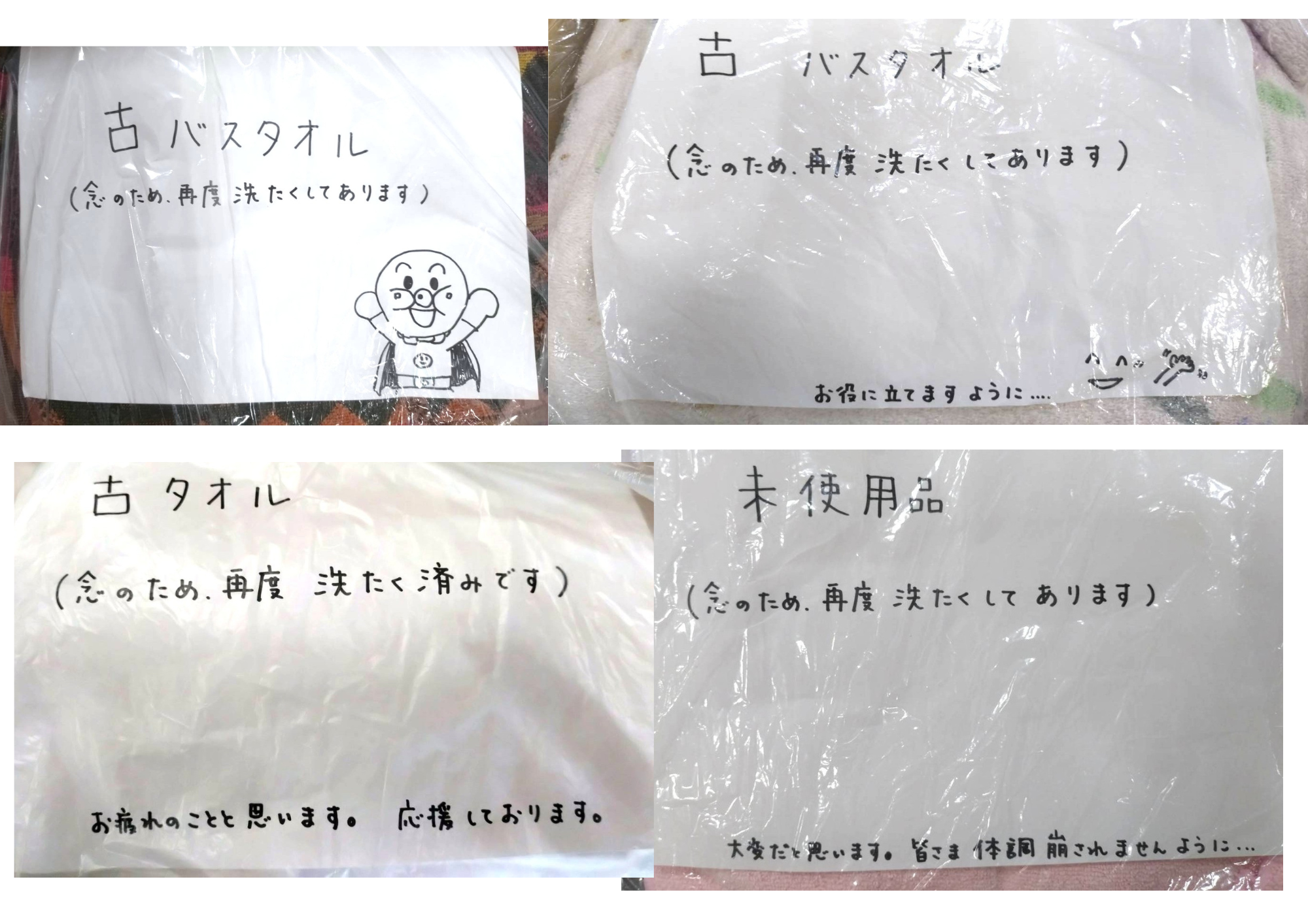 職員のご友人よりタオル等のご寄贈をたくさんいただきました。ご寄贈品と共に心温まるメッセージが…✨