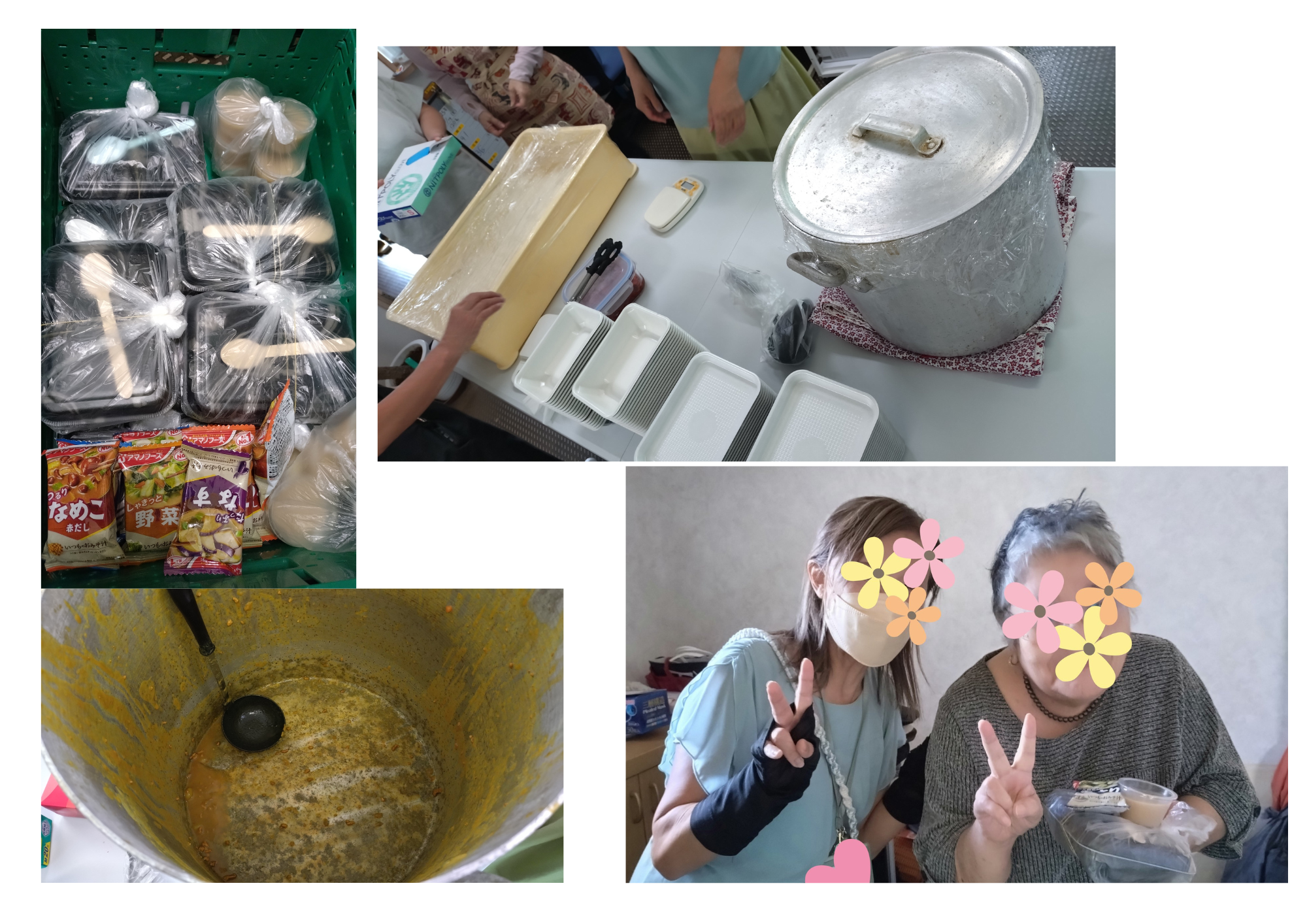 また、養和会ボランティアサークル「ててんくんくん」では、2週にわたり炊き出しなどを受け取りに行くことができないご利用者さま宅へ、カレーライスや豚汁などをお届けする活動を行いました。