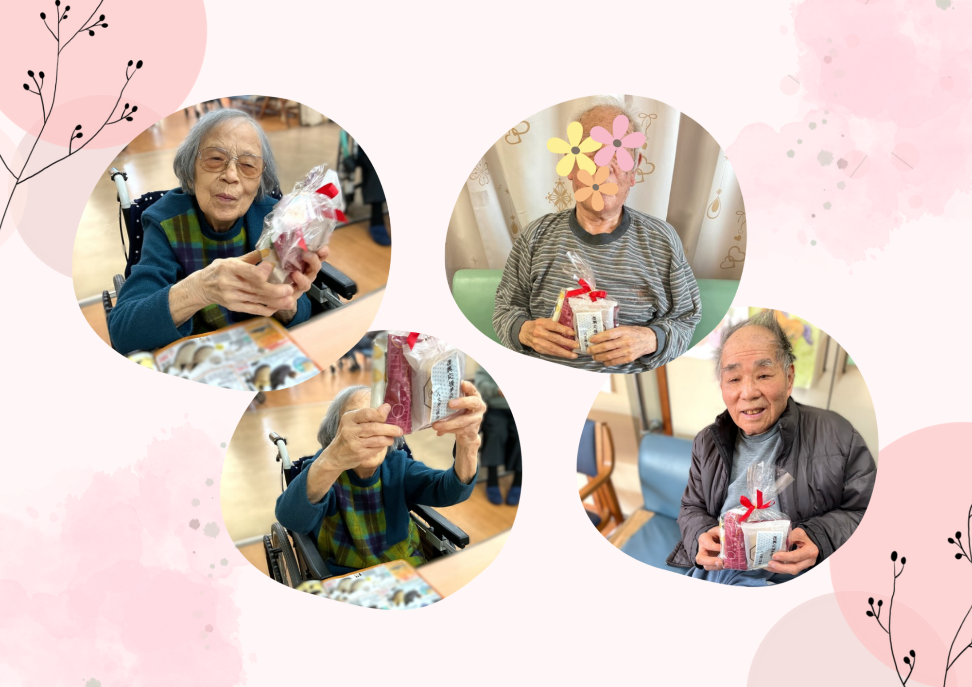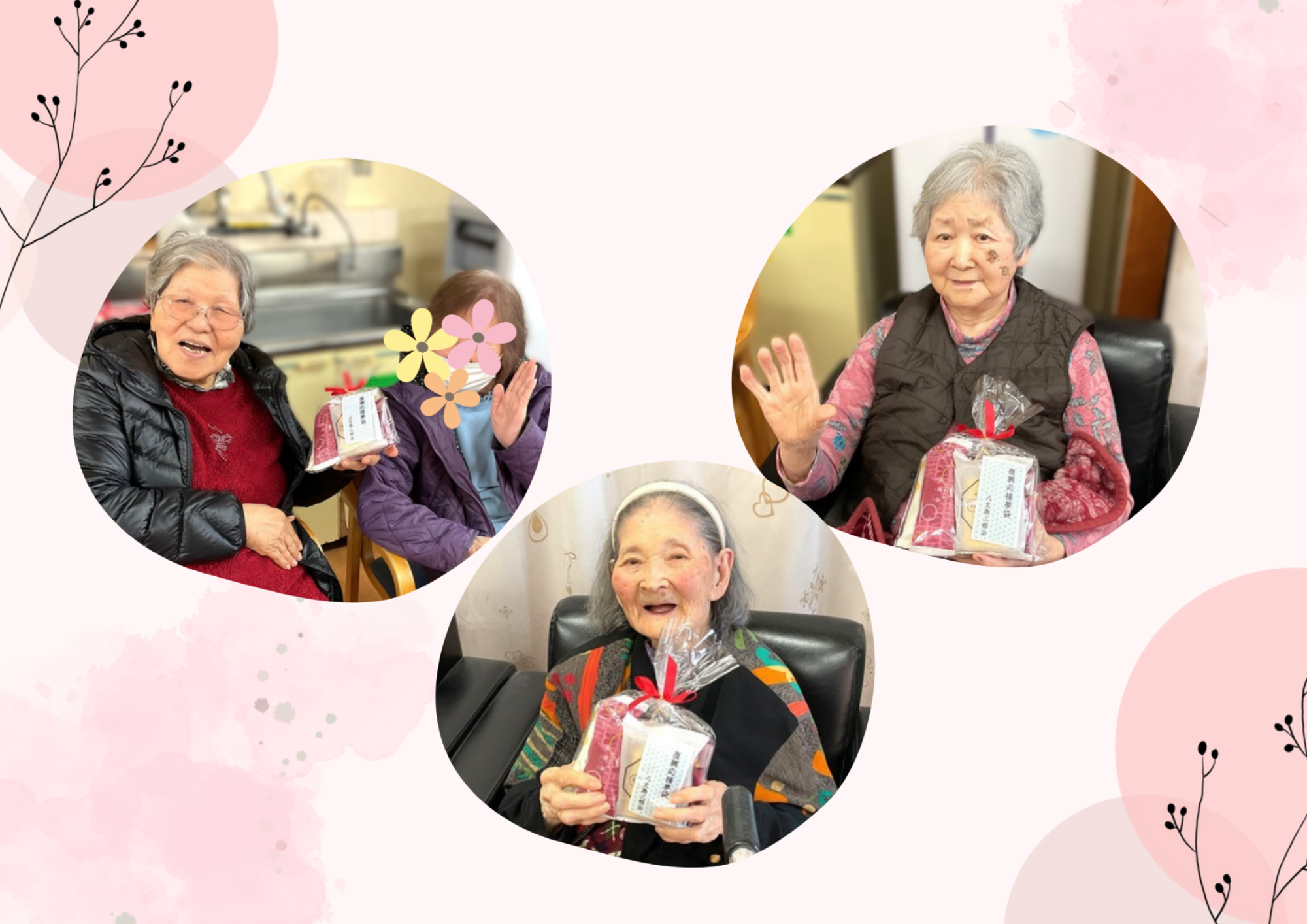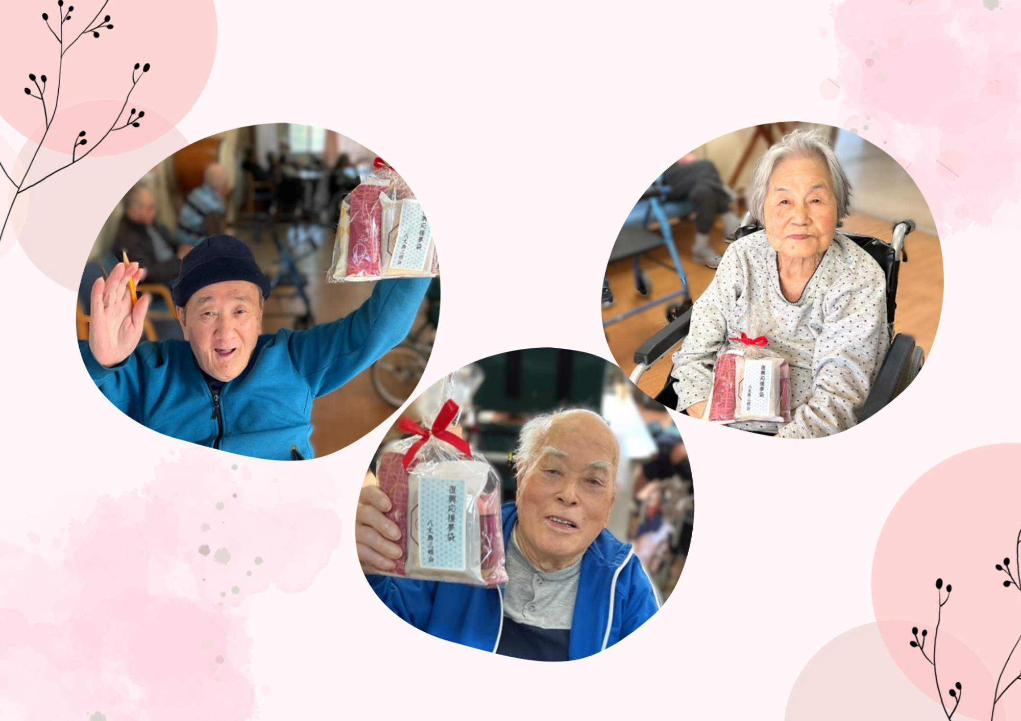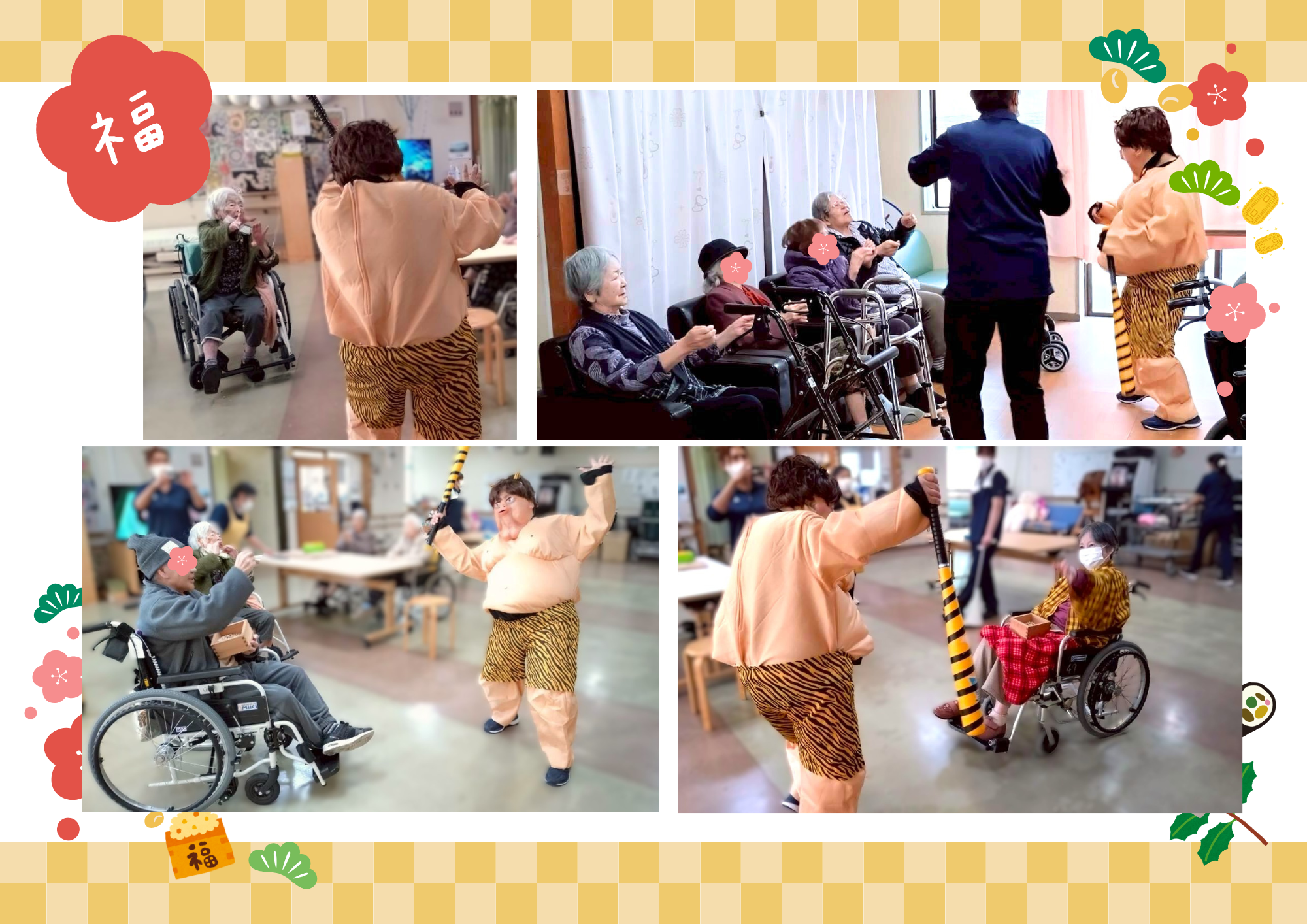 令和8年2月節分など 養和会では節分の日に、特養に入所されている年男・年女の皆さまに豆まきをして頂いています。 今年も陽気な鬼さんが登場し、元気いっぱいに楽しく豆まきをして頂きました♪ デイサービスでは、通所されている利用者の皆さまが、豆に見立てた新聞紙をたくさんまいていらっしゃいました😊 皆さまの無病息災をお祈りします✨ 八丈島三根会の皆さまより「復興応援夢袋」としてお菓子の詰合せをたくさんご寄附いただきました。 ひとつひとつご丁寧に包んであり、復興へのお気持ちが伝わってきました。利用者の皆さまにもとても喜んでいただけました。 八丈島三根会の皆さま、本当にありがとうございました✨
